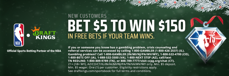 This holiday season, new customers to DraftKings Sports have a chance to win $150 right off the bat. After making their first deposit of $5 or more, any new player who wins their first $5+ bet on any NBA or NFL moneyline will instantly get $150 in bonus bets.