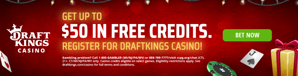 Players new to DraftKings Casino can also get another very sweet deal this holiday season. After making an initial deposit of at least $5, players get up to $50 in site credits, as well as a matched deposit bonus up to $2,000. Terms and conditions apply, see below for details: